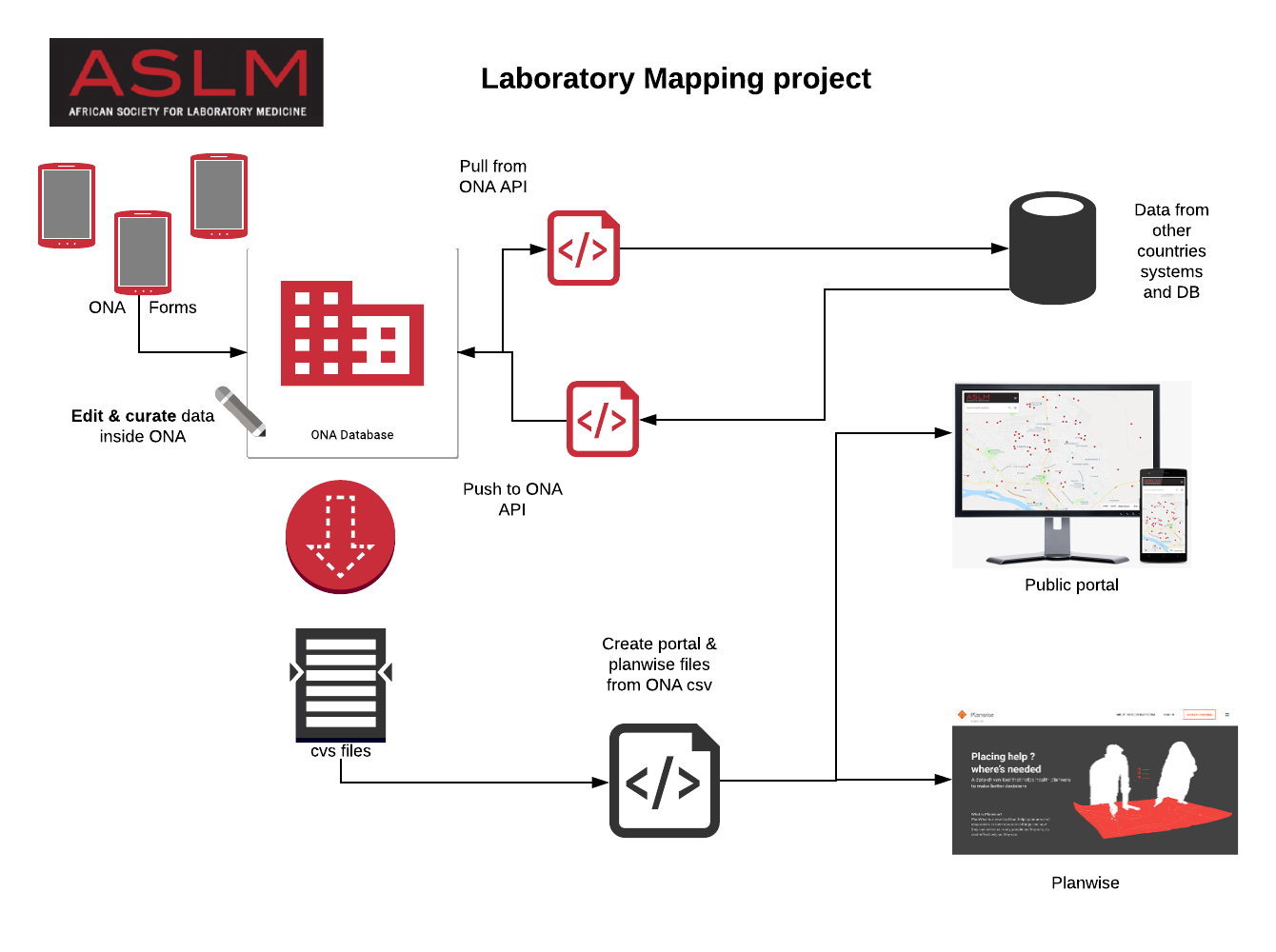 Once downloaded from ONA the data can be used to feed the public portal as well as the Planwise project.